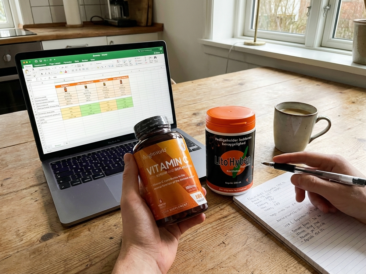 - Tjek om der findes fuld ingrediensliste og doseringsvejledning online.