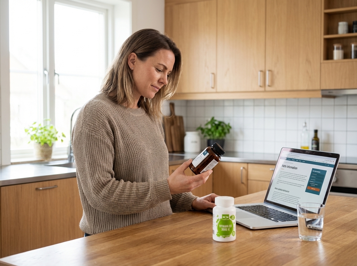Håndter risikoen ved at vurdere tilskud som et supplement til kosten frem for en erstatning for kostomlægning, og prioriter produkter med tydelig ingrediensliste og nøgterne formuleringer.