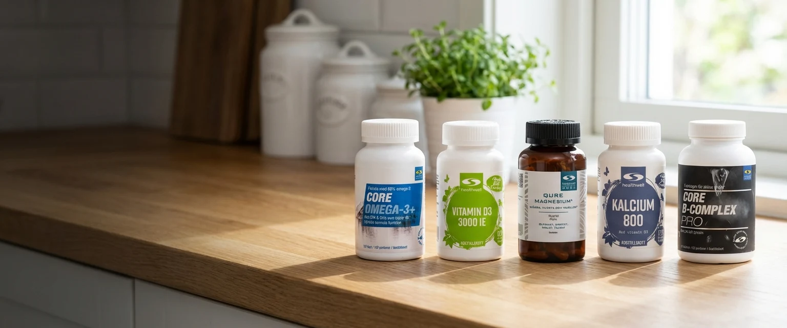 Se først på indholdet og formålet: Har du brug for elektrolytter, fibre, omega-3 eller en fedtkilde som MCT? Kig derefter på dosis, antal aktive ingredienser, sødemidler, kapseltype og om produktet passer til din hverdag.