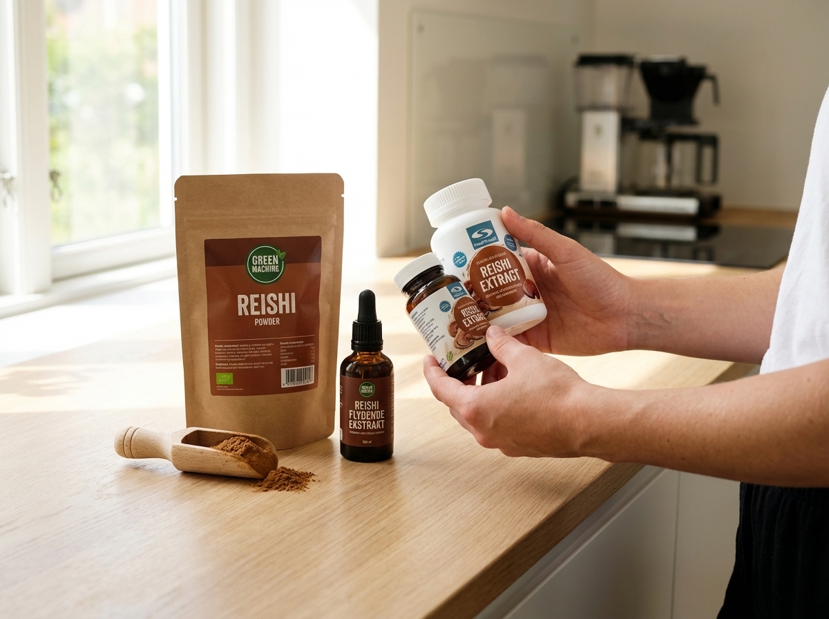 Reishi sælges både som rene ekstrakter og som blandingsprodukter med andre svampe, urter eller vitaminer. Det kan være praktisk, men gør også vurderingen mindre enkel.