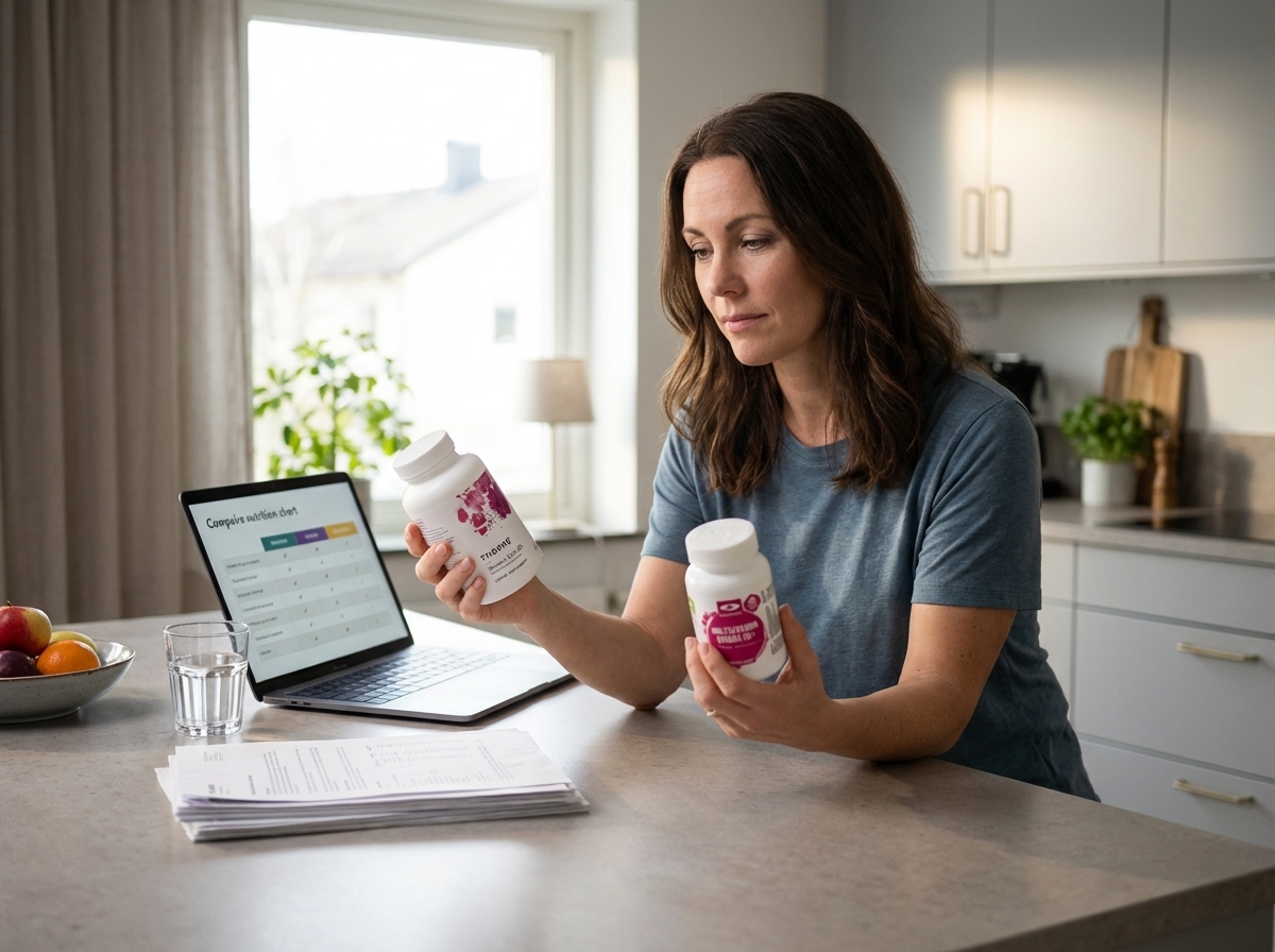 Se derfor efter, om produktet indeholder jern, og om det matcher din livsfase og tolerance. Ved tvivl kan individuel vurdering være mere relevant end en standardløsning.