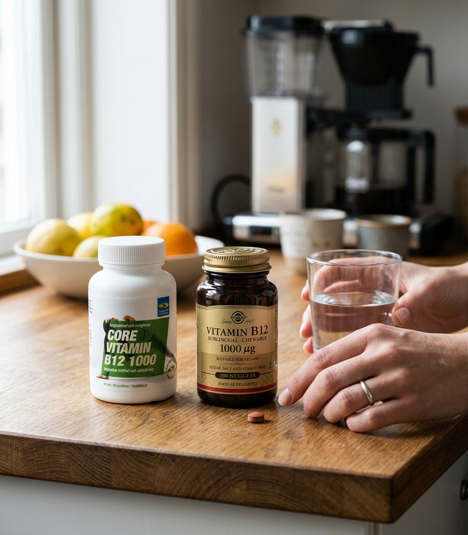 Undgå at vælge et produkt alene ud fra markedsføring eller meget høje doser uden at se på dit faktiske behov. Det er også en fejl at overse dosering pr. tablet, antal doser og hvilken form for B12 produktet indeholder.