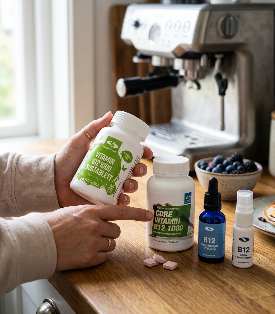 Vitamin B12 findes i flere former, og den bedste løsning er ofte den, du faktisk får brugt. For nogle er tabletter nemmest, mens andre foretrækker sugetabletter eller spray.
